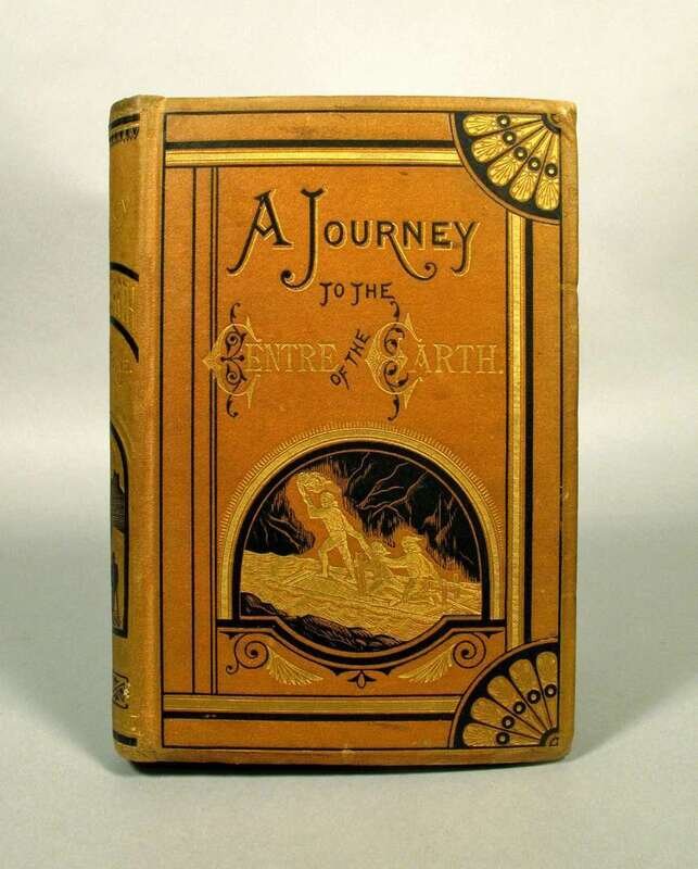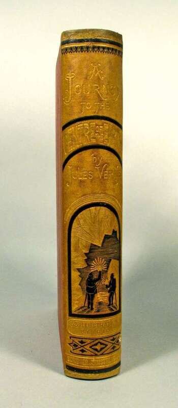 Verne, Jules. A Journey to the Centre of the Earth. New York: Scribner, Armstrong & Co., [1874]. 1st Amer. ed., 2nd ptg. 8vo, orig. pictorial terra cotta cloth; spine discolored, spine foot and head with restoration, new bands. Orig. endpapers. With 52 illus. by Edouard Riou. 413pp & 6pp ads. "Scribner, Armstrong & Co." at foot of spine, rather than the later "Scribners". Very minor scattered spotting to front matter and light toning to page edges.