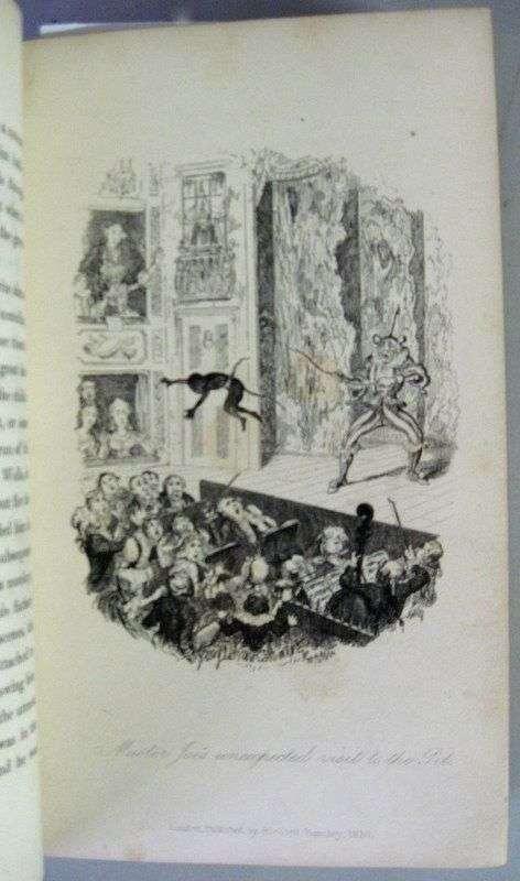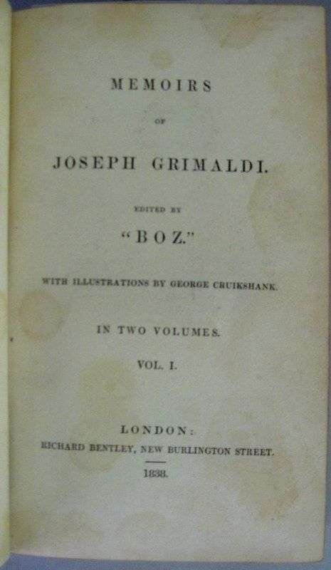 Memoirs of Joseph Grimaldi. London: Richard Bentley, 1838. 1st ed., 1st issue. 8vo, later 19th-cent. full scarlet morocco, gilt, a.e.g., gilt, red morocco doublures; occasionally slightly scuffed, spine ends & joints occasionally rubbed. With portrait + 12 plates by Cruikshank. Scattered minor spotting. Moderate spotting to front matter. With 12 titles, lacking adverts.(Dickens, Charles, editor.) Memoirs of Joseph Grimaldi. London: Richard Bentley, 1838. 1st ed., 1st issue. 2 vols. 8vo, contemp. 1/2 purple cloth & marbled bds, spines gilt; extremities just rubbed. Portrait + 12 plates by Cruikshank. Moderate foxing. Lacking 1/2 titles & adverts. Cohn 237. * Mayhew, The Brothers, editors. Whom to Marry. London: David Bogue, [1848]. 1st ed in book form. 8vo, later 19th-cent. full crushed green morocco, gilt-lettered spine, t.e.g., other edges untrimmed, inner Cohn 545. * (Smedley, Frank E.) Frank Fairlegh. London: A. Hull, Virtue, [1850 or slightly later.] 8vo, late 19th-cent. richly gilt full crushed green levant morocco, spine gilt, t.e.g., other edges untrimmed, turn ins gilt, raised bands; edges occasionally scuffed, spine fading to brown, by Sangorski & Sutcliffe.With 30 plates by Cruikshank. Internally generally clean. Early book form ed. Cohn 754. * Stowe, Harriet Beecher. Uncle Tom's Cabin. London: John Cassekk, 1852. 8vo, later 19th-cent. gilt paneled full tan calf, spine richly gilt, t.e.g., other edges rough trimmed, inner dentelles gilt; spine darkened, joints rubbed & stressed, orig. brown cloth covers & spine bound in, by Riviere & Son. With frontis portrait, title vignette, & 27 wood engraved plates by Cruikshank. Minor offsetting, light foxing to verso of frontis. 1st Cruikshank book form ed., and among the earliest English Uncle Tom's.
