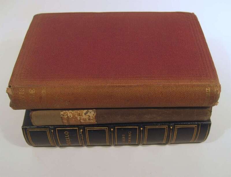 Browning, Robert: Sordello. L: Edward Moxon, 1840. 1st ed., 1st issue. Sm. 8vo, orig. bds, paper spine label. (2), (1)-15(1) adverts at back. Rebacked, orig. spine & label laid down, some chipping to spine label. Lacking 1/2 title. Untrimmed. In custom 1/2 morocco case & chemise. Broughton A14.* Dramatis Personae. L: Chapman and Hall, 1864. 1st ed. 8vo, orig. red pebbled cloth, gilt-lettered spine; some edge wear, spine ends frayed, spine sunned. Hinges stressed. 2pp adverts. B A69.