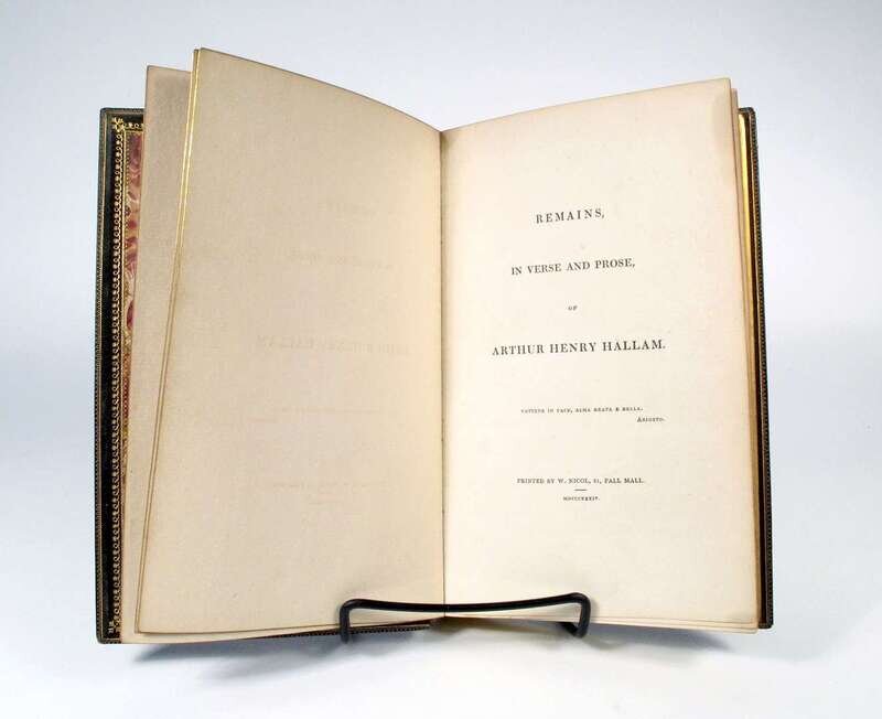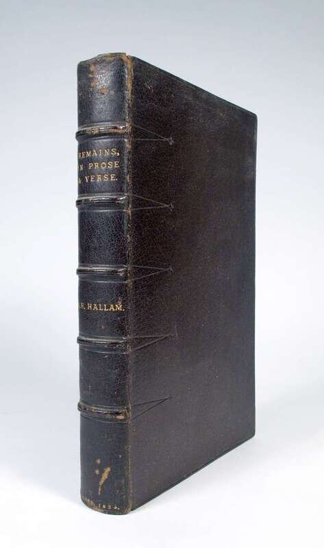 Hallam, Arthur Henry. Remains in Verse and Prose. (London): W. Nichol, 1834. 1st ed. Privately printed. 8vo, contemp. (or slightly later) full dark brown morocco, gilt-lettered spine, a..e.g., inner dentelles gilt; scuffed minor staining at top gutters of backmatter but internally generally clean. Complete, good margins.