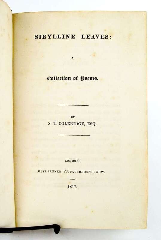 Coleridge, S(amuel) T(aylor). Sibylline Leaves. London: R. Fenner, 1817. 1st ed. 8vo, 19th-century 1/2 brown morocco & bds, gilt lettered spine; occasionally scuffed, spine ends rubbed. With all 1/2 title, errata; without table of contents & adverts. Scattered light foxing. Tall copy.