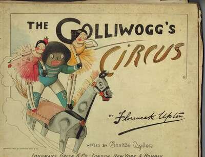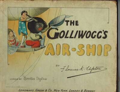 Upton, Bertha & Florence K. The Golliwogg's Air-Ship. L: Longmans, 1902. 1st ed. Oblong 4to, orig. color pictorial bds; moderate to heavy edgewear. Scattered light to moderate dust smudging. Front hinge cracked. With color pictorial title & 31 full page color pictorial illus. Scattered minor spotting. Just slightly shaken. Ink gift inscription, dated Christmas 1902 on front free endpaper. * The Golliwogg's Circus. L: Longmans, Green, 1903. 1st ed. Oblong 4to, color pictorial bds; moderate edge wear, some dust smudging. Hinges cracked, text black detaching. Shaken. With color pictorial title + 31 full page color illus.