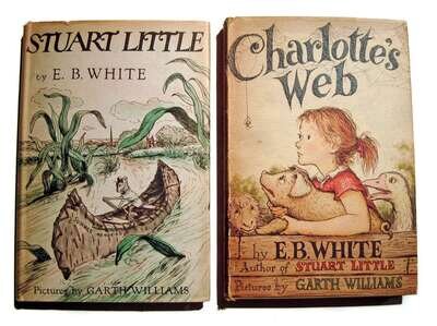 (William, Garth, illus.) White, E.B: Stuart Little. New York: Harper, (1945). 1st ed. 8vo, orig. pictorial cloth; light edge wear, d/j (slightly darkened, occasional minor chipping to edges). Illus. * Charlotte's Web. New York: Harper, (1952). 1st ed. 8vo, orig. pictorial cloth; light wear, d/j, (joints & edges scuffed, starting to darken, occasional minor chipping to edges.) Illus. Both VG/VG+.