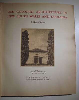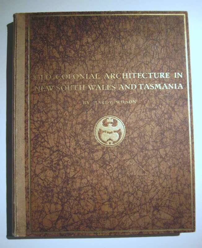 Wilson, Hardy. Old Colonial Architecture in South Wales and Tasmania. Sydney, 1924. #850/1000. Folio, orig. cloth-backed bds, gilt; light wear. With 50 mounted plates, lettered tissue guards. Some dust-soiling at center fore edge of title & instruction leaves.