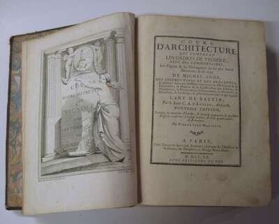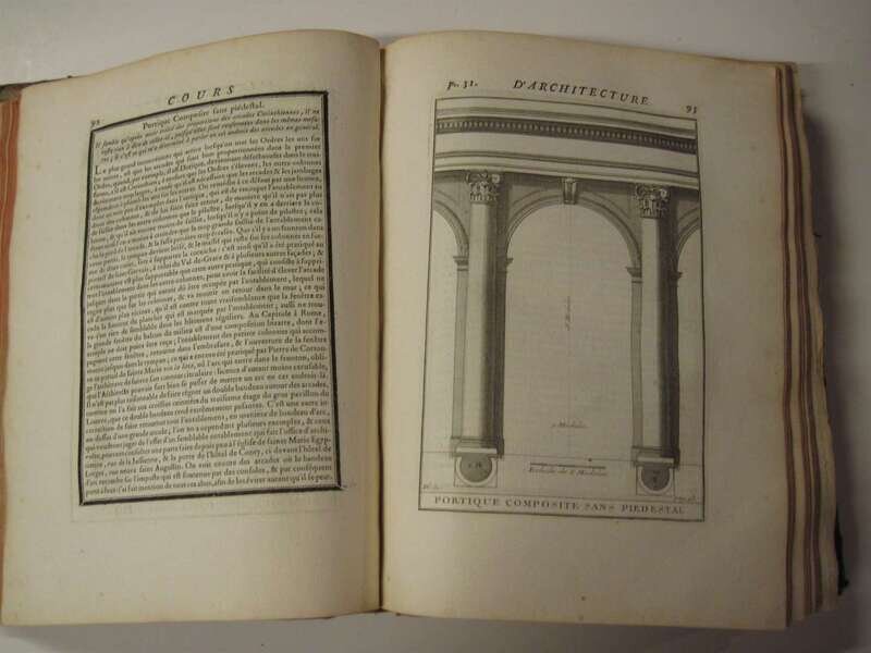 D'Aviler, Augustin Charles. Cours D'Architecture. Paris: Charles-Antoine Jombert, 1760. 4to, mottled calf, worn and scored. Hinges splitting. With engraved title & 154 plates, many folding. Plates generally clean, except for occasional light spotting, 1 plate with closed horizontal tear, 1 with staining.