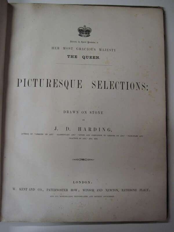 Harding, J.D., illus. Picturesque Selections. London: W. Kent and Co., [1861]. Folio, 3/4 morocco & gilt-lettered bds; rubbed corners, edges worn. With 30 mounted tinted litho. plates. Title-page with some spotting, other pages generally clean.