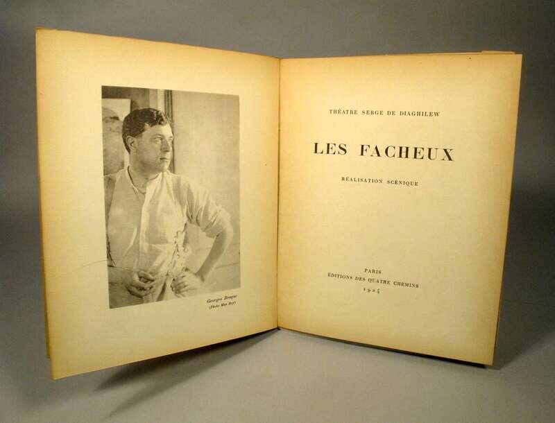 Diaghilev, Sergei [Pavlovich.] Les Facheux. Paris: Editions des Quatre Chemins, 1924. #138/ 425 on velin d'Arches. 4to, orig. pictorial stiff wrappers; toned, with wear to heads of spines. With frontis port. by Man Ray, hand-colored plates and other photo illus. by Jean Cocteau & Georges Braque. Some internal discoloration.