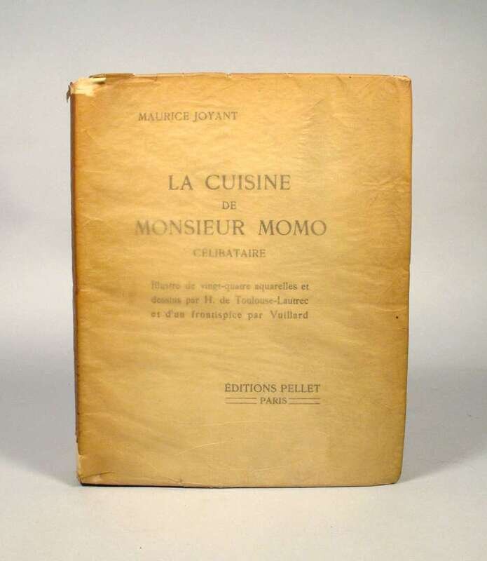 [Toulouse-Lautrec, illus. by.] Joyant, Maurice. La Cuisine de Monsieur Momo, Celibataire. Paris: Editions Pellet, [1930]. #167/ 250. 4to, orig wrappers, glassine; discolored. With colored frontis after Vuillard & 24 plates by Toulouse-Lautrec. Internally generally clean.