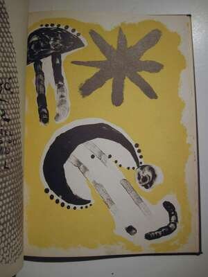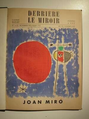 (Miro, Joan) Derriere Le Miroir. Paris, Nov.-Dec., 1948; May-June, 1950, June, July, August, 1953; June, July, Aug. 1956. Nos 14-15; 29-30; 57; 58; 59; 87; 88 & 89. Folio, contemp. blue cloth, orig. color litho. covers bound in. Nos. 14 & 15 - 8pp, each with ori. color litho illus. by Miro. Nos. 29 & 30 - 2 orig. double-page color lithos - incl. wrappers by Miro. Nos 57, 58 & 59. 12 orig. color lithos., incl. lg fold color litho. Nos 87, 88, 89 - 7 orig. lithos, of which 6 are color lithos (3 double & single page.) Internally clean & crisp, each issue separate by double blank leaves. Without the Chroniques insert in Nos. 14-15.