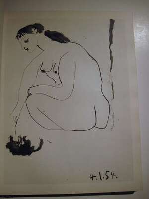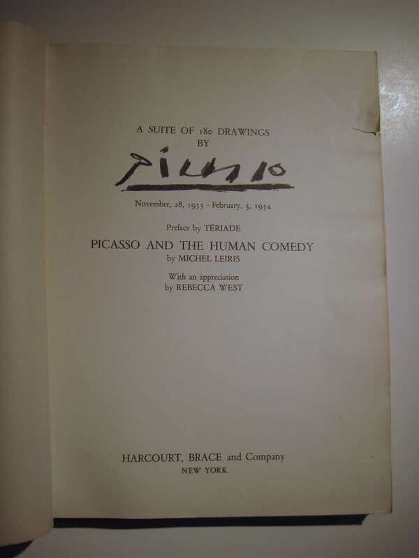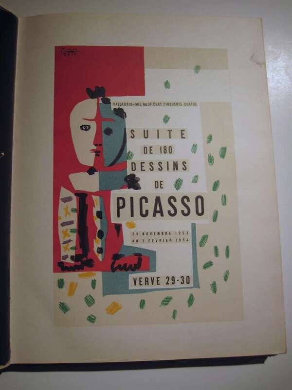 (Picasso, Pablo.) Suite de 180 Dessins. New York: Harcourt, Brace & Co., [1954]. American Edition. Verve No. 29/30. Folio, orig bds; scuffed, spine faded, binding loose from text block. With color litho title, color & b/w lithos. Internally generally clean, small closed edge tear to both text & litho title-pages. Lacking dust-jacket.