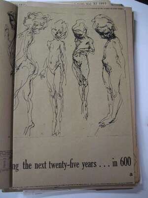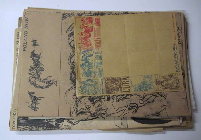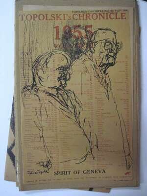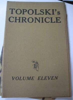 (Topolski, Feliks.) Topolski's Chronicle. London, 1956-1963. Folio, orig. litho wrappers. Litho. illus. Approx. 13 assorted issues. Vols 4, 8, 9, 10 & 11. Vols. 11 presumed complete, in orig. vol. 11 portfolio. Minor wear.