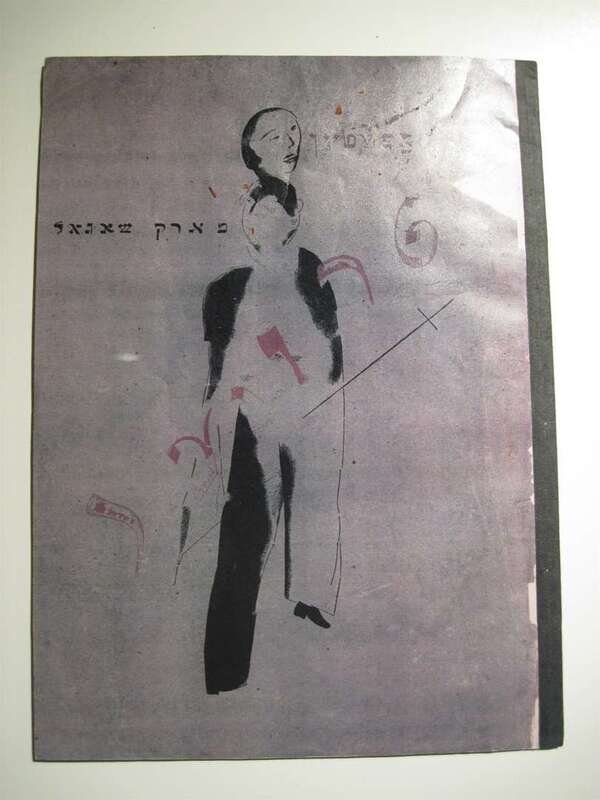 [Chagall, Marc.] Hofshteyn, David. Troyer [Sorrow.] Kiev: Kultur Lige, 1922. 1st ed. Folio, orig. wrappers; light creasing and small edge tears. Illus. by Marc Chagall. All above transcribed from the Yiddish. Modern facsimile cover.