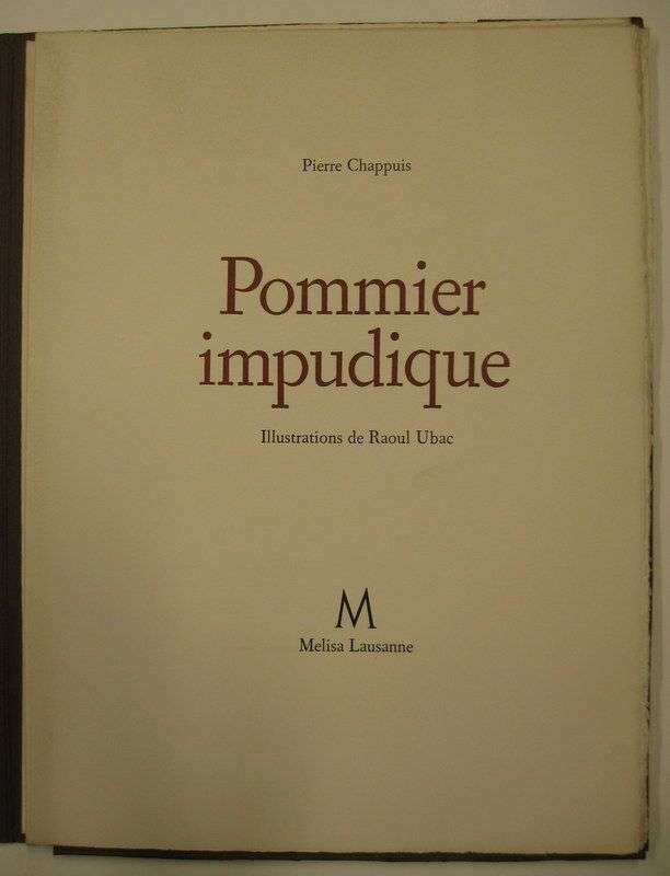 Chappuis, Pierre; Ubac, Raoul, illus. Pommier Impudique. Lausanne, Melisa, (1970). 1/5 (of 570). Folio, orig.wrappers. With 3 orig. lithos signed in pencil by Ubac. Some light offsetting. Internally generally clean.