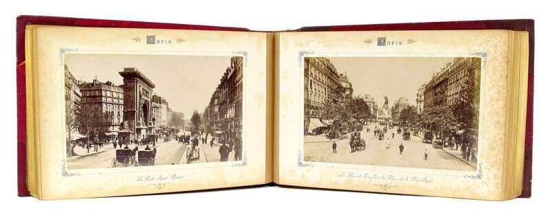 19th-Century Photography: Views of Paris: Paris et ses Environs. [Paris]: Maison Thomas, [c1890]. Oblong 4to, orig. 3/4 morocco, gilt-lettered; edge wear, hinges slightly stressed. Approx. 50 silver prints, mounted on bds; scattered moderate foxing.