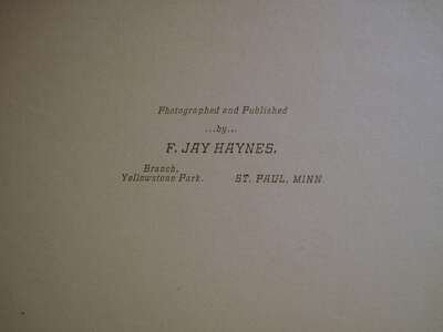 Photography - Yellowstone National Park: St. Paul, Minnesota: F. Jay Haynes, c1910. 4to, orig. red lettered cloth; light edge wear. With 40 gelatin silver prints; each 4 x 5 inches; 101 x 127 mm. Some photos a little faded. Occaisional minor to moderate spotting to mat.