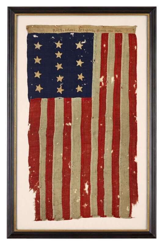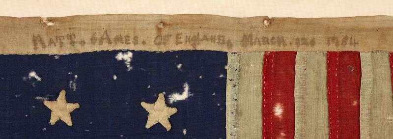 Rare thirteen star American Revolutionary Flag hoist inscribed, "natt. ames. of england, march. 26 1784"