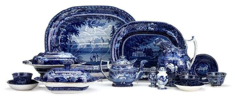Group of Staffordshire dark blue transferware in English Scenes first half 19th century