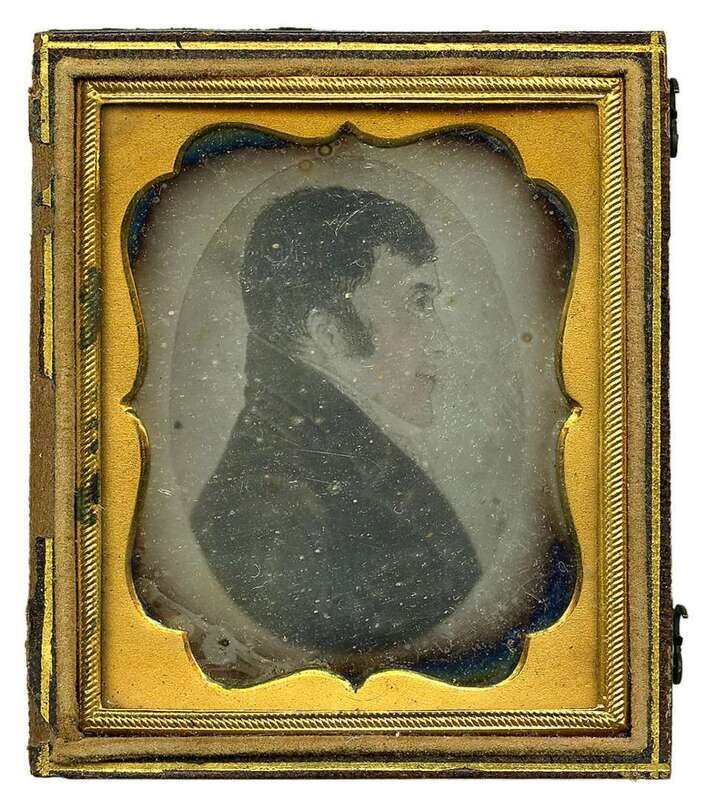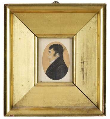 American School 19th century miniature portrait of a man and a daguerreotype of miniature