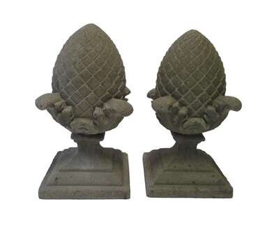 Pair of cast concrete pineapple garden ornaments