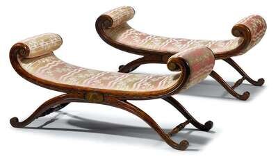 Pair of Neoclassical upholstered and painted birch window seats first half 19th century