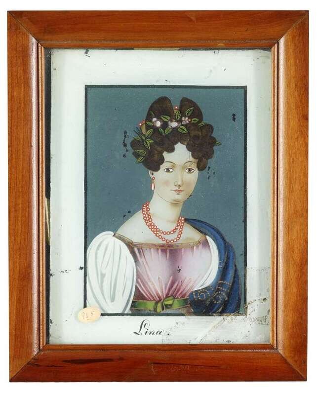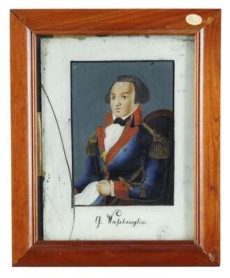 Continental School 19th century two reverse paintings on glass: identified as george washington and lina