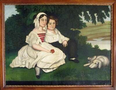 American School 19th century two children and a dog