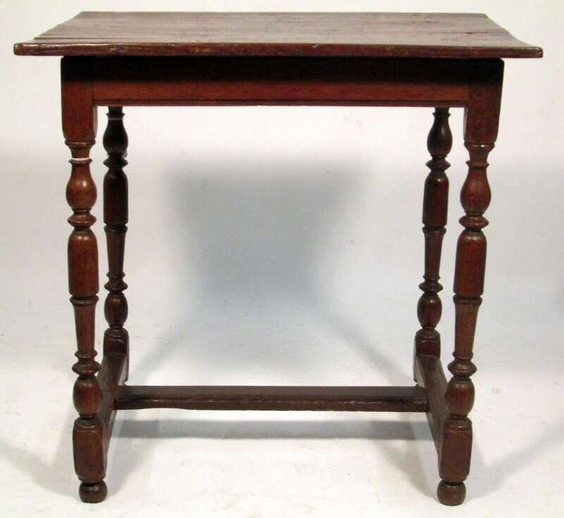 The rectangular top over plain frieze, raised on turned legs united by H-stretcher.