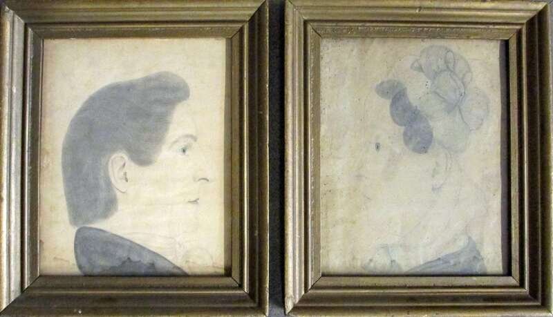 American School 19th century pair of profile portraits: a lady and a gentleman