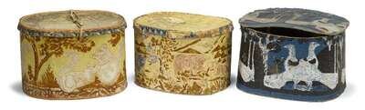 Three wallpaper covered hat boxes first half 19th century