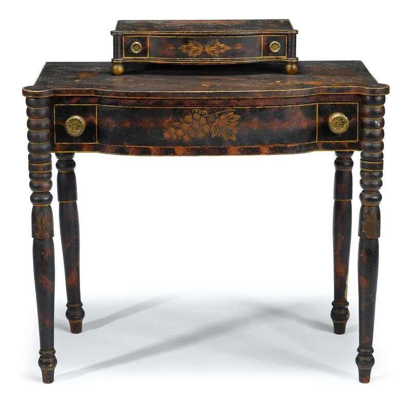 Paint-decorated and stenciled dressing table new england, early 19th century