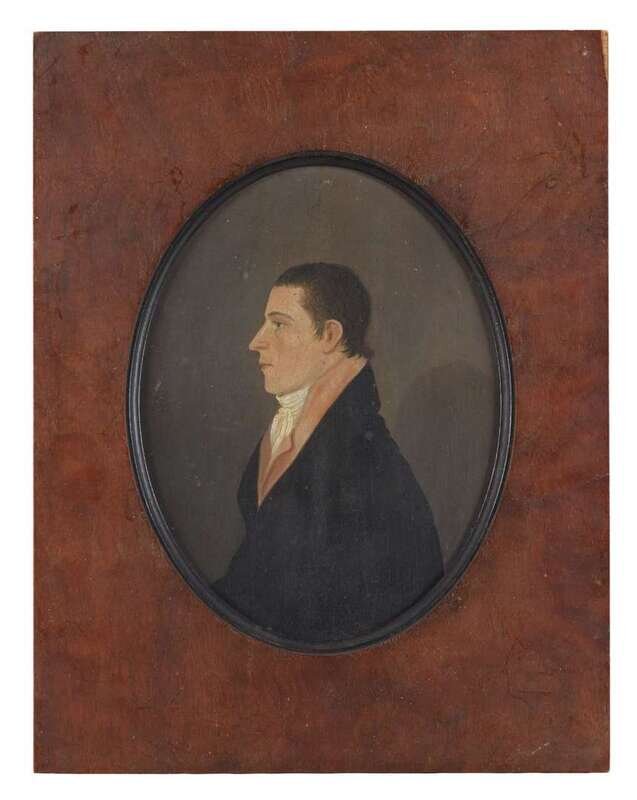 Attributed to Jacob Eichholtz (1776-1842) profile portrait of a young man, circa 1810