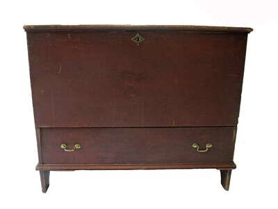 Red-painted blanket chest with drawer possibly long island, late 18th/early 19th century