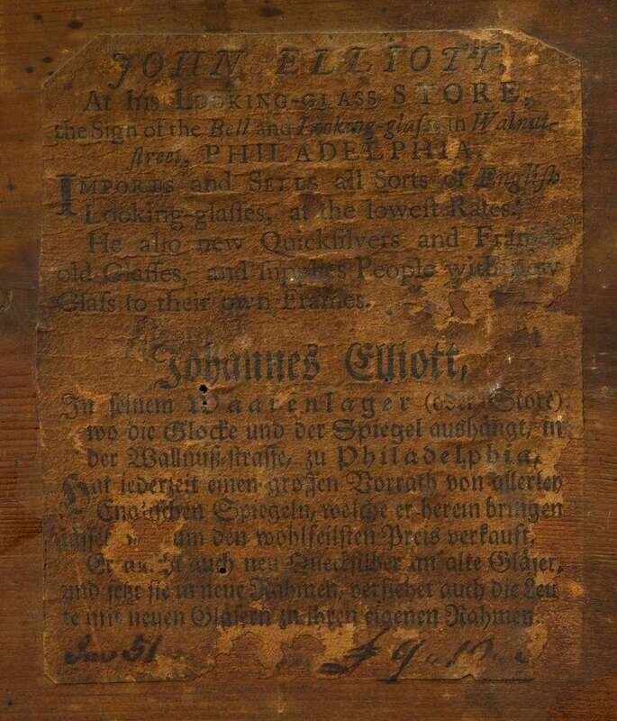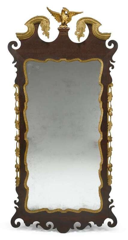 Chippendale mahogany and giltwood pier mirror bears printed paper label of john elliott, jr. (1739-1810), philadelphia, pa