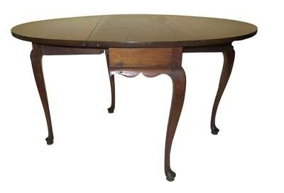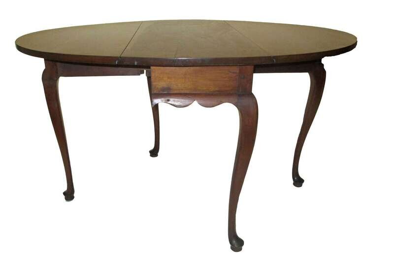 Oblong top with "D" shaped leaves, shaped skirt, cabriole legs ending in pad feet.