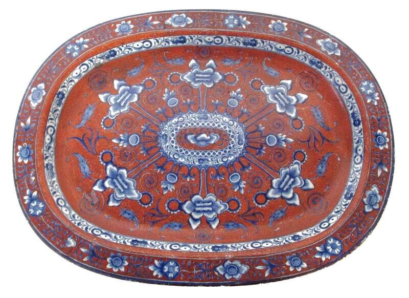 Staffordshire platter with red and blue Chinoiserie decoration early 19th century