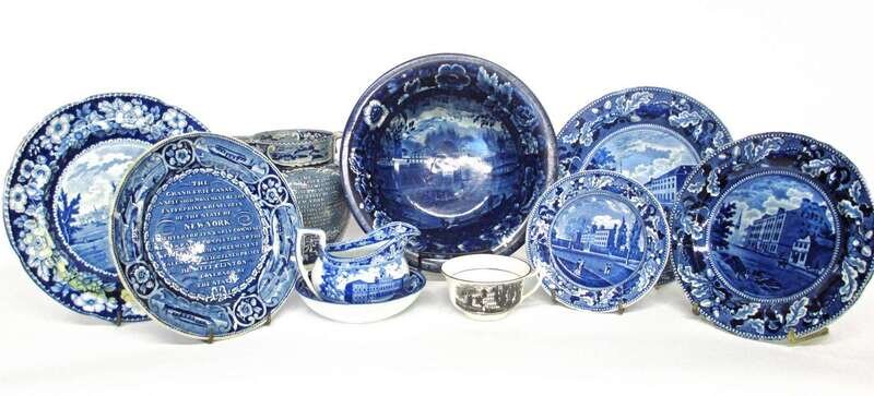 Staffordshire Historical Blue transferware of New York Views various makers, 1830s