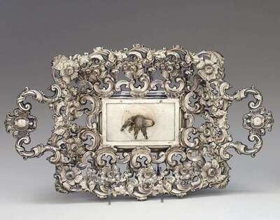 Austrian silver twin-handled tray vienna, 1858, maker's mark hs