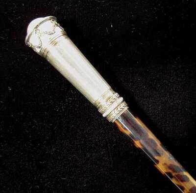 Austrian silver, tortoiseshell, seed pearl, and rose quartz parasol handle vienna, circa 1872-1922