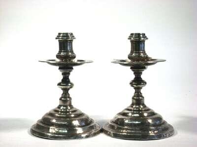 Pair of Continental hammered silver candlesticks possibly 18th or 19th century spanish colonial