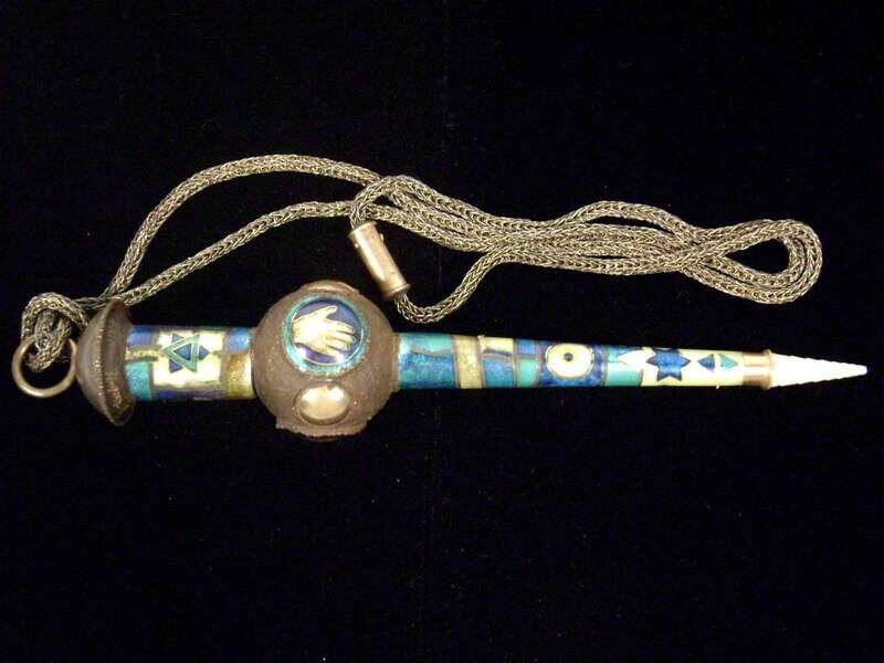 Contemporary enameled torah pointer miriam halpern, dated 1981
