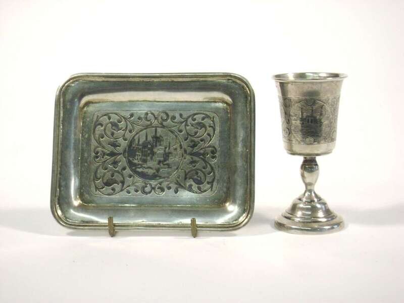 Russian niello silver tray and cup