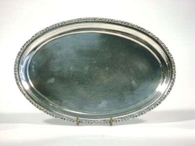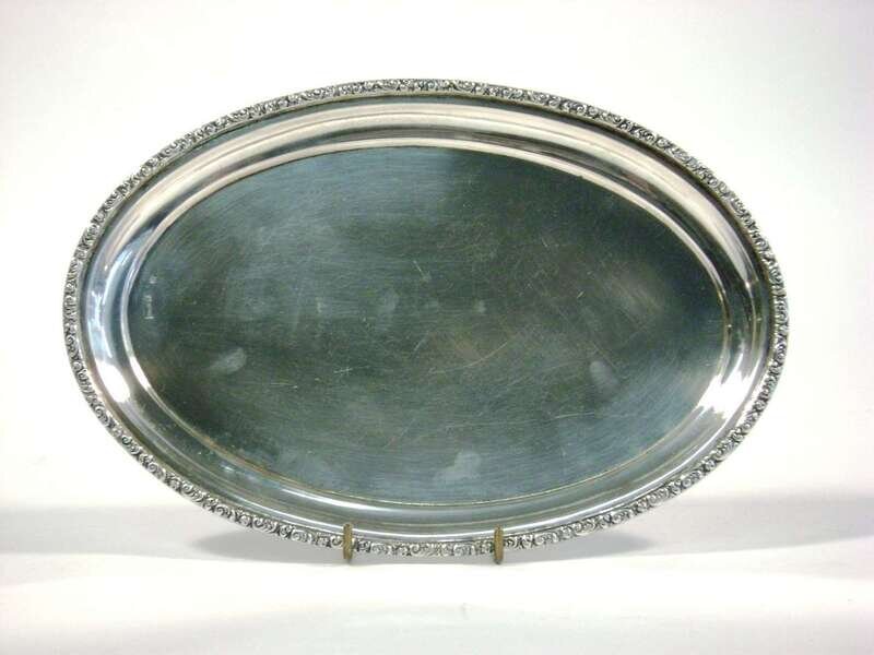 Oval form with floral and scroll border, assay marks rubbed.
