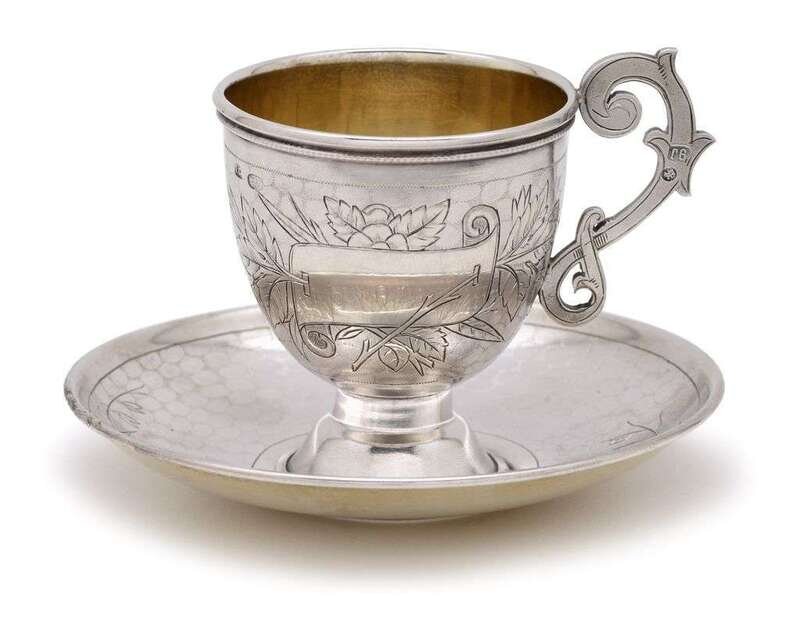 Russian silver tea cup and saucer henrik blootenkleper, moscow, 1895, assay master alexander smirnov