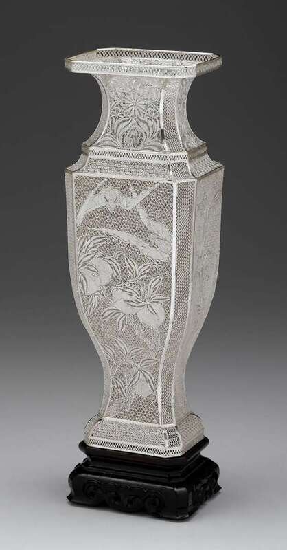 Chinese sterling silver filigree vase 20th century