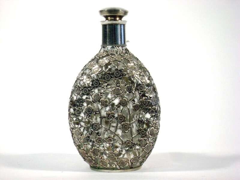 Japanese stoppered glass bottle with sterling silver overlay