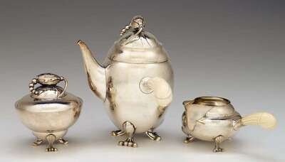Danish hammered sterling silver three-piece coffee service georg jensen, copenhagen, post 1945
