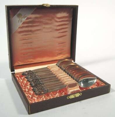 "Acorn" pattern, comprising twelve demitasse spoons in fitted plush-lined case. (12).