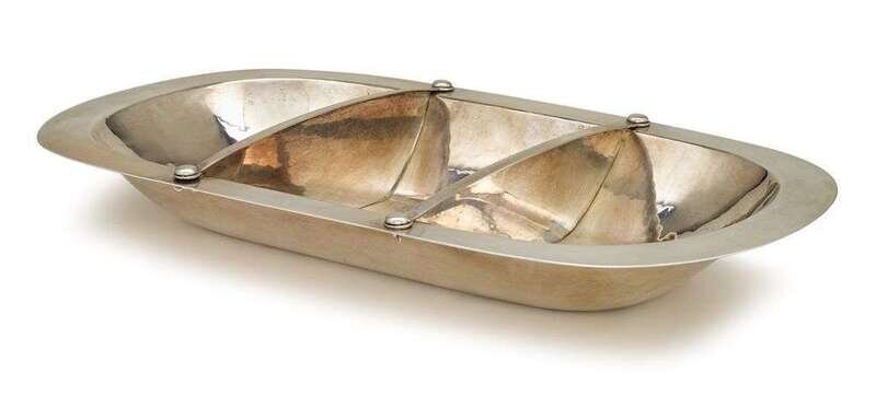Hammered sterling silver divided serving dish porter blanchard, burbank, ca, circa 1930s