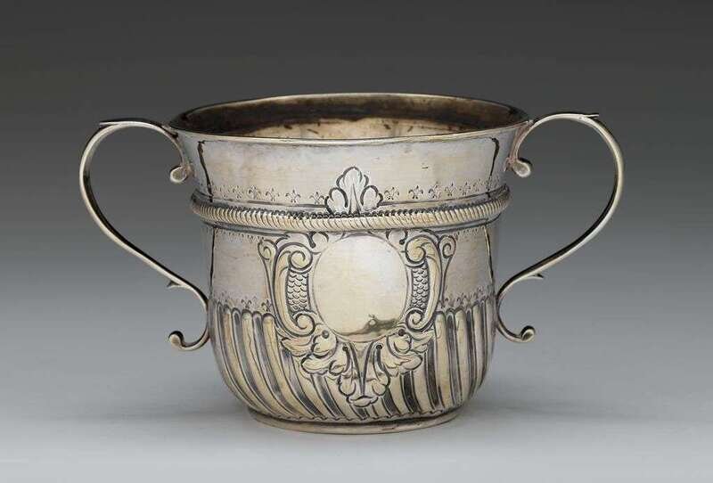 Early George II repoussé silver twin-handled porringer richard bayley, london, 1727-28