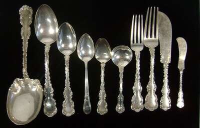 Sterling silver flatware service charles osborne for whiting mfg. co., north attleboro, ma, circa 1891